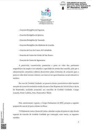 Neste sentido, o deputado do BNG considera que Cerdedo-Cotobade debería integrarse nun proxecto territorial arredor da marca Arte Rupestre do Val do Lérez e da ría de Pontevedra, que inclúa tamén os concellos de Campo Lameiro, Ponte Caldelas, Poio, Pontevedra e Marín.
